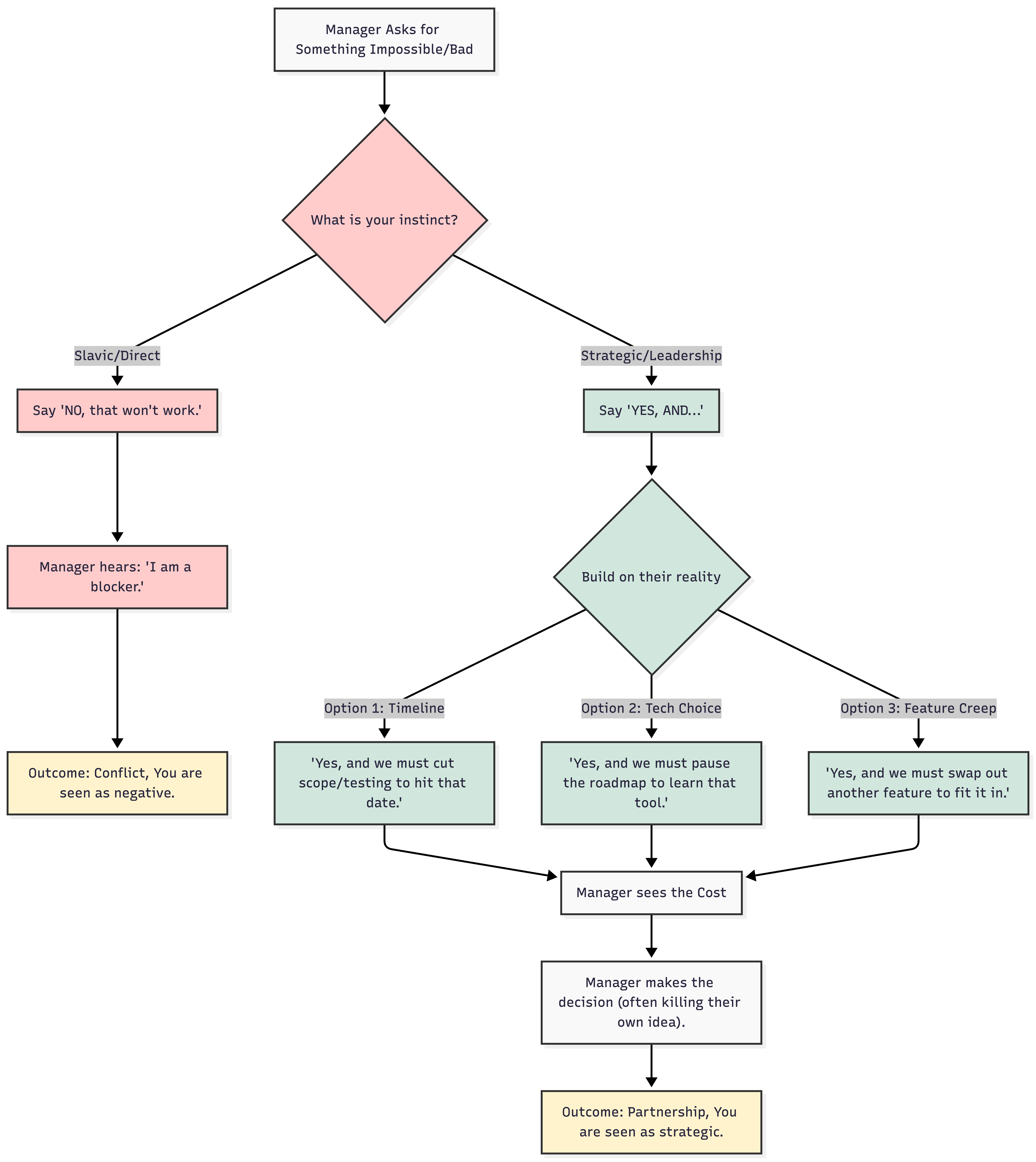 2. The Mechanism: “Yes, And” in Engineering This isn’t just for comedians. “Yes, And” is the basis of collaborative problem solving. When you stop blocking (saying “No”) and start building (saying “Yes, and it costs X”), you move from being an obstacle to being a constraint. And engineers love constraints. Do note the subtle addition to the concept.